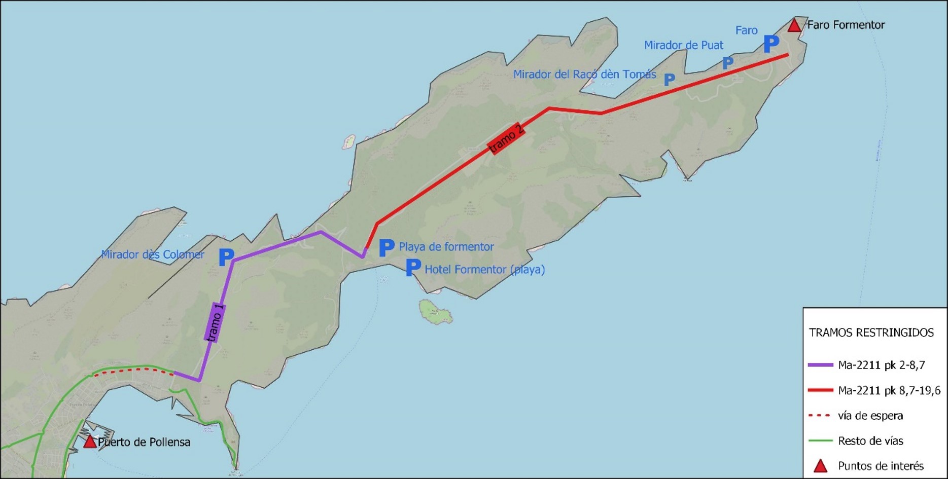 En este sentido, la Dirección General de Tráfico y el Consell Insular de Mallorca, establecen unas restricciones de accesos, horarios y tramos a ciertos vehículos en la Ma-2210, entre los puntos kilométricos 2,0 y 19,6, tal como queda reflejado en la Resolución de 14 de enero de 2026, de la Dirección General de Tráfico, por la que se establecen medidas especiales de regulación del tráfico durante el año 2026.
