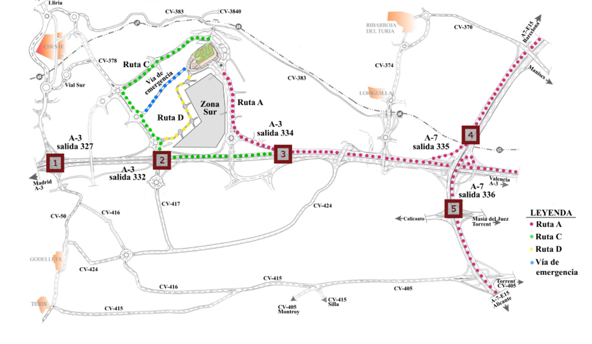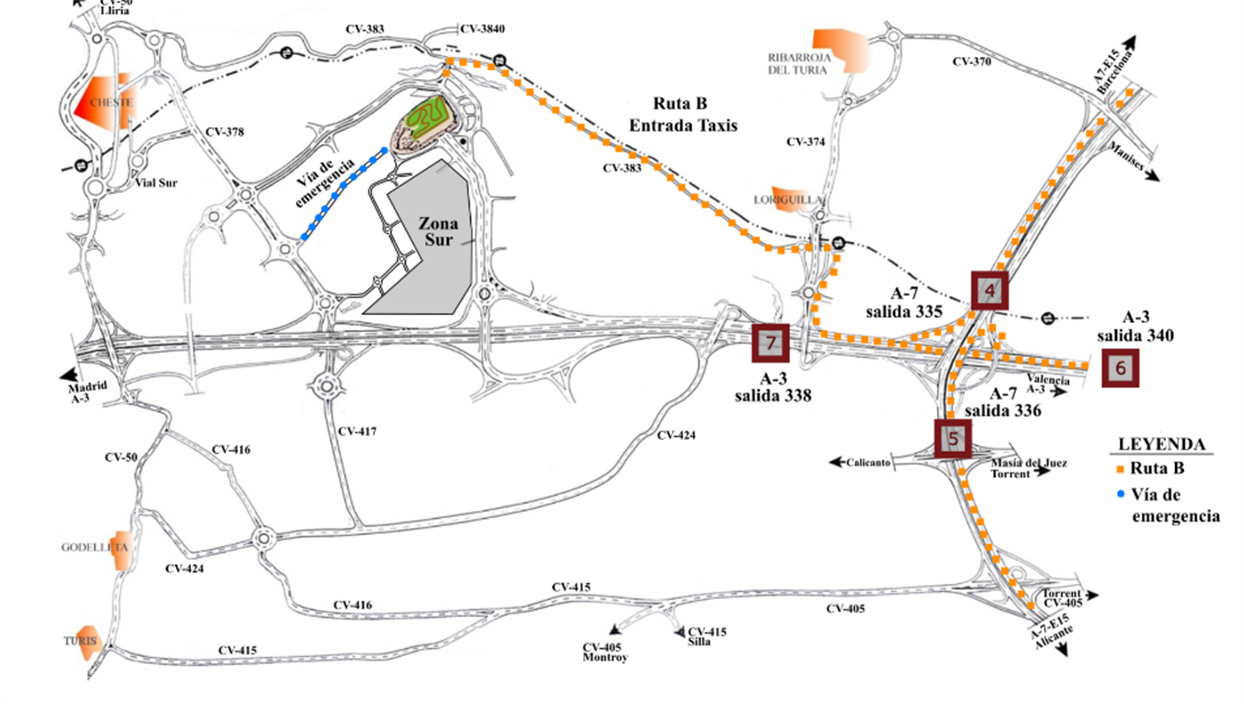 En esta ocasión, con el objetivo fundamental de aliviar los accesos principales y mejorar notablemente la fluidez del tráfico durante el evento, desde el Centro de Gestión del Tráfico de Levante, en coordinación con la Agrupación de Tráfico y el propio Circuito Ricardo Tormo, se han preparado unos mapas explicativos con itinerarios alternativos recomendados para el fin de semana, tanto de entrada como de salida del circuito, en función del tipo de vehículo en el que se realice el desplazamiento. Los mapas van adjuntos al correo electrónico y se pueden consultar en la web de la DGT.