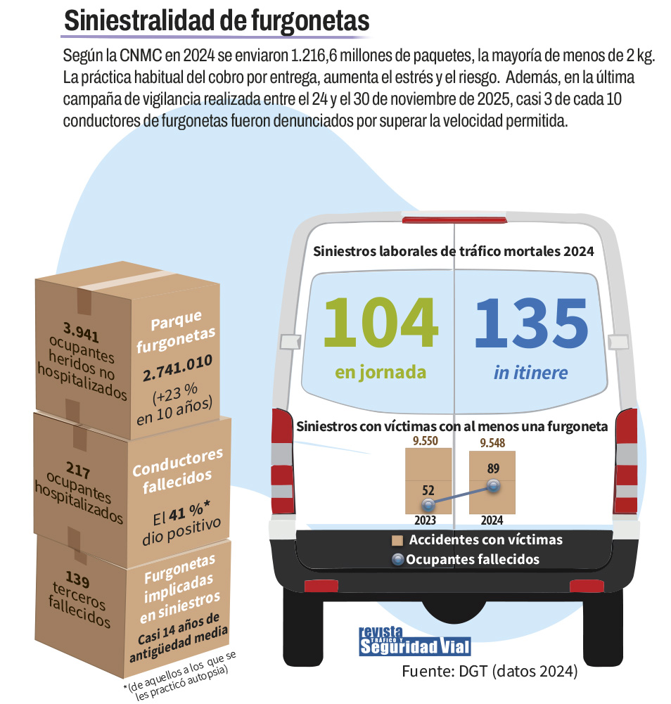 Y las cifras de este año 2025 no son muy diferentes: según el avance de datos del Ministerio de Trabajo y Economía Social, de enero a septiembre de 2025 se han producido en España 458.570 accidentes laborales con baja, de ellos 53.695 son de tráfico (11,7 %). Y respecto al número de fallecidos en este periodo: se han producido 547 accidentes laborales mortales, 158 relacionados con el tráfico (28,9 %), 57 en jornada y 101 in itinere.